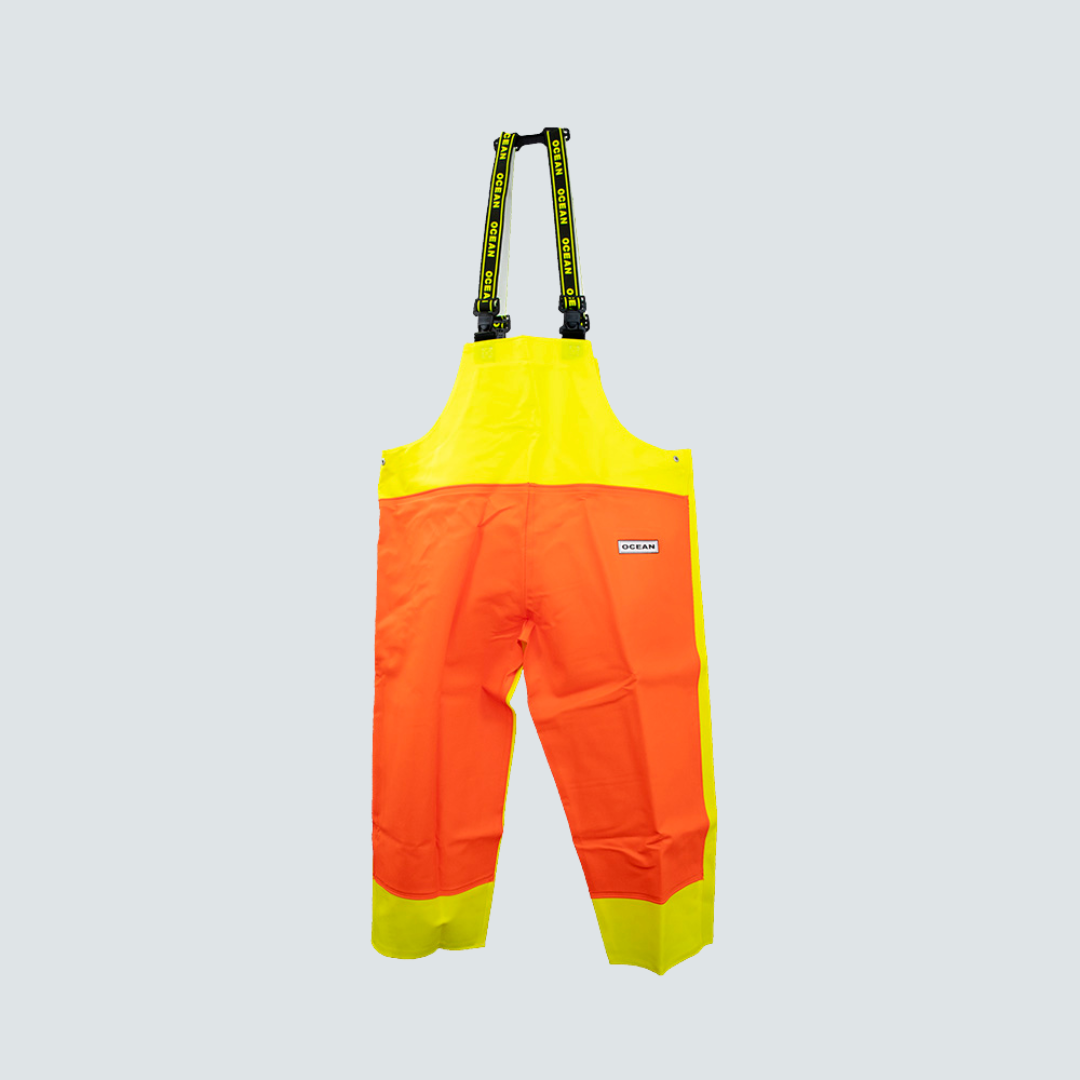 Overallen Nordsee fra OCEAN har et moderne udseende. Denne overall har elastiske og justerbare seler samt en justerbar talje med trykknapper. Dette bidrager til at sikre den bedst mulige komfort, når overallen bruges. Disse OCEAN PVC-overalls er frostsikrede ned til -40 grader og er resistente over for fiskeolie.