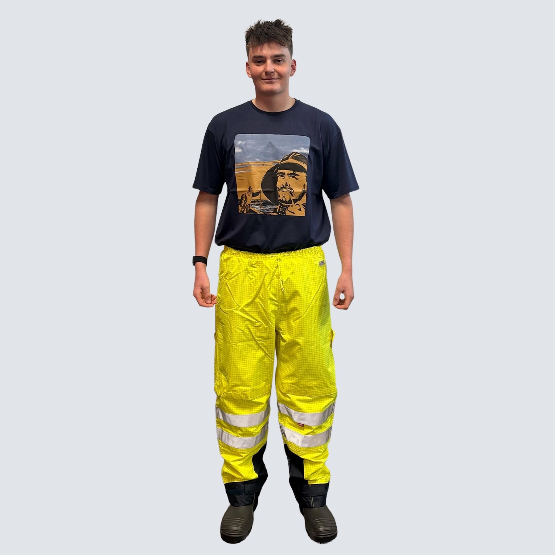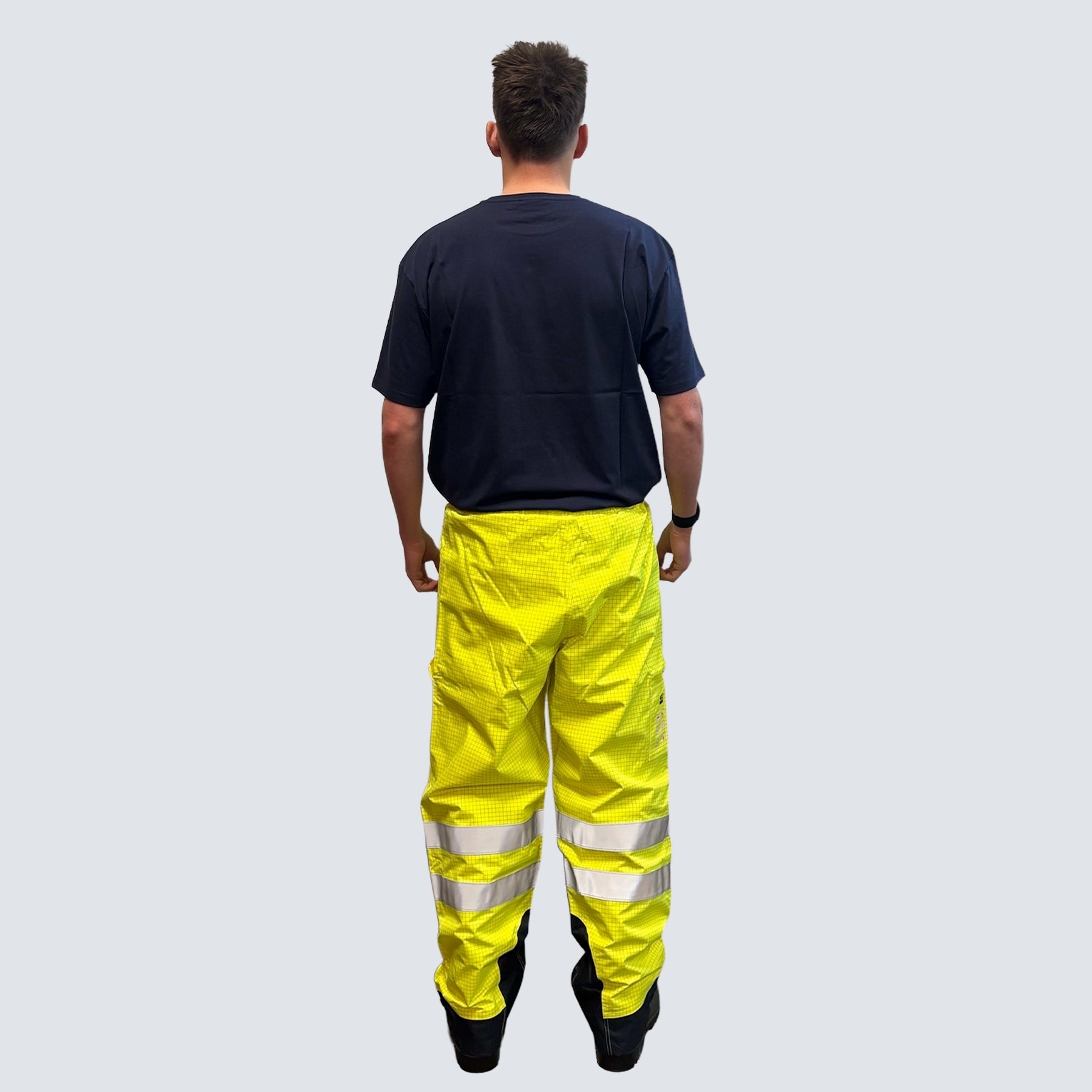 Foret på disse bukser er også flammehæmmende, og de brede refleksstriber sikrer høj synlighed. Dermed er disse bukser optimal til arbejde i miljøer hvor synlighed er afgørende.