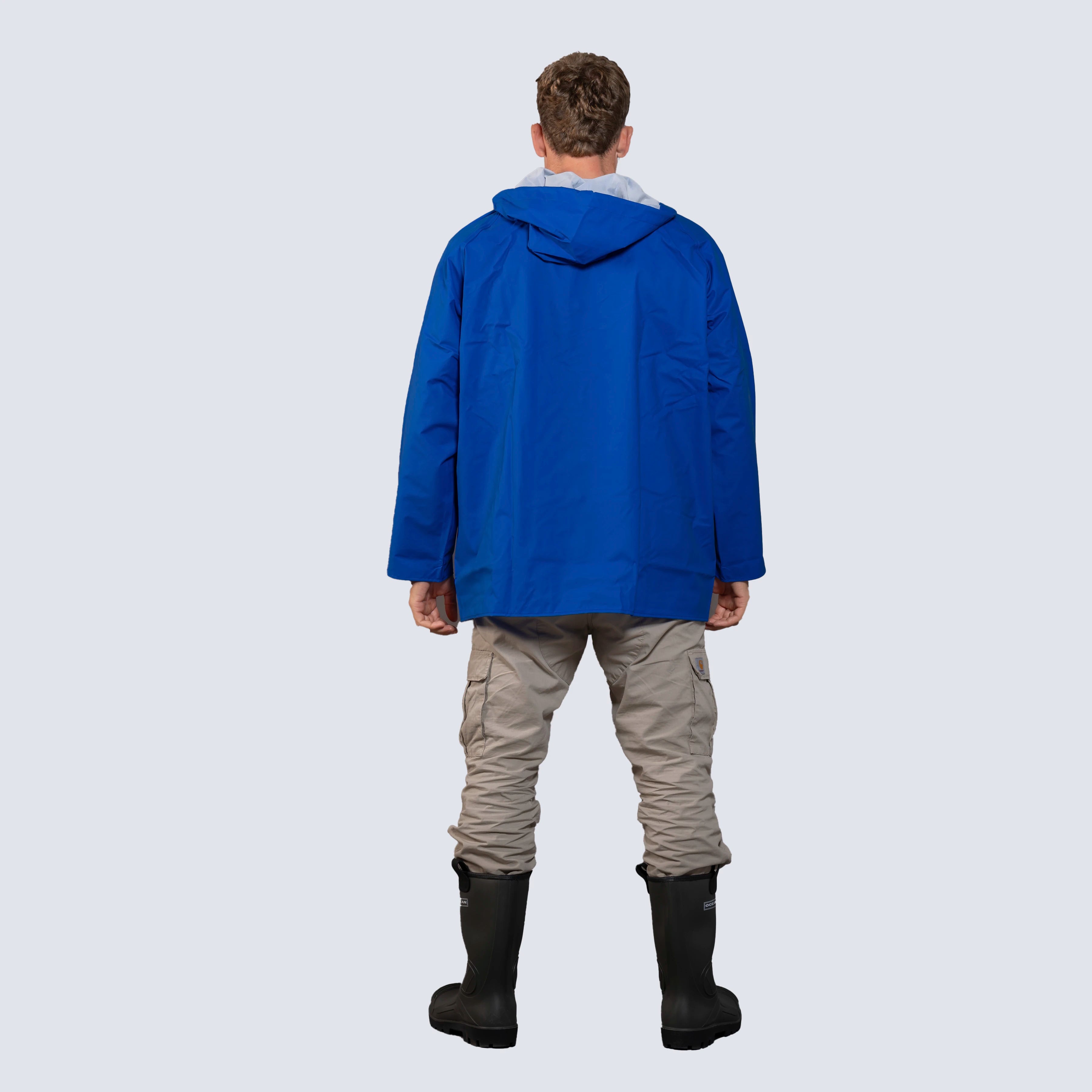 Die Atec Regenjacke von OCEAN ist eine Regenjacke mit einer Länge von 80 cm. Die Kapuze hat einen Kordelzug, mit dem sie an das Gesicht angepasst werden kann. Die Atec Jacke schließt mit Druckknöpfen.