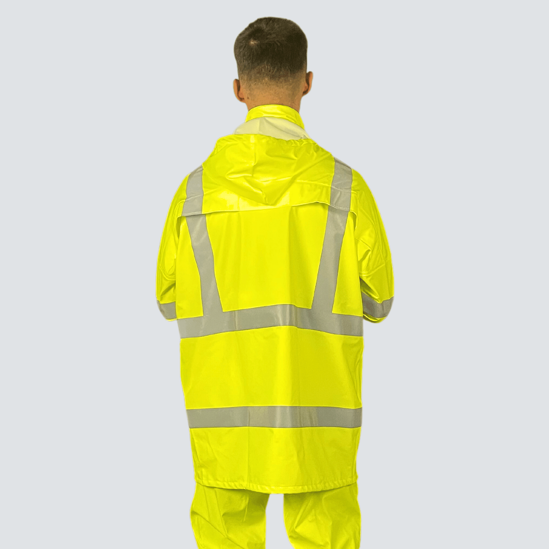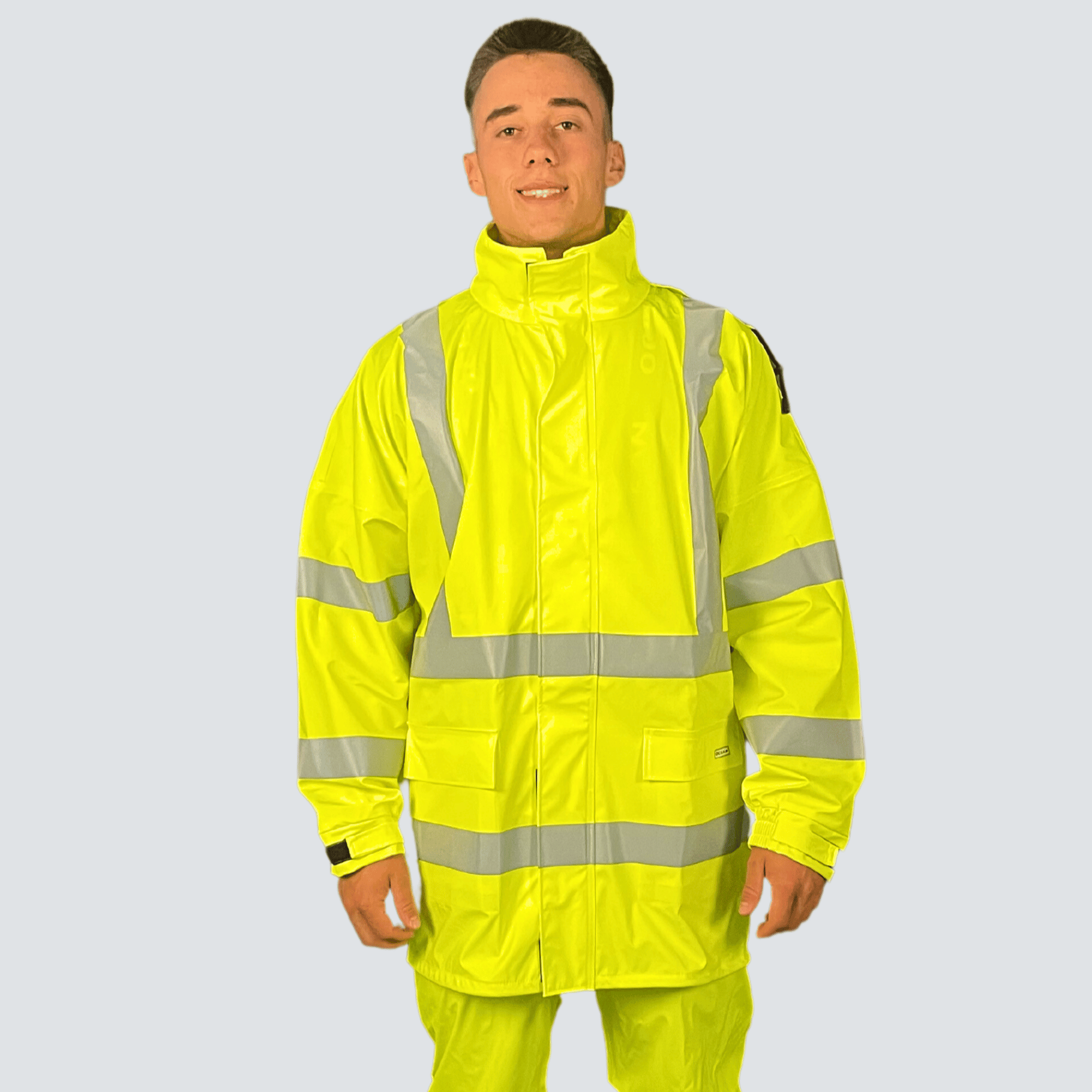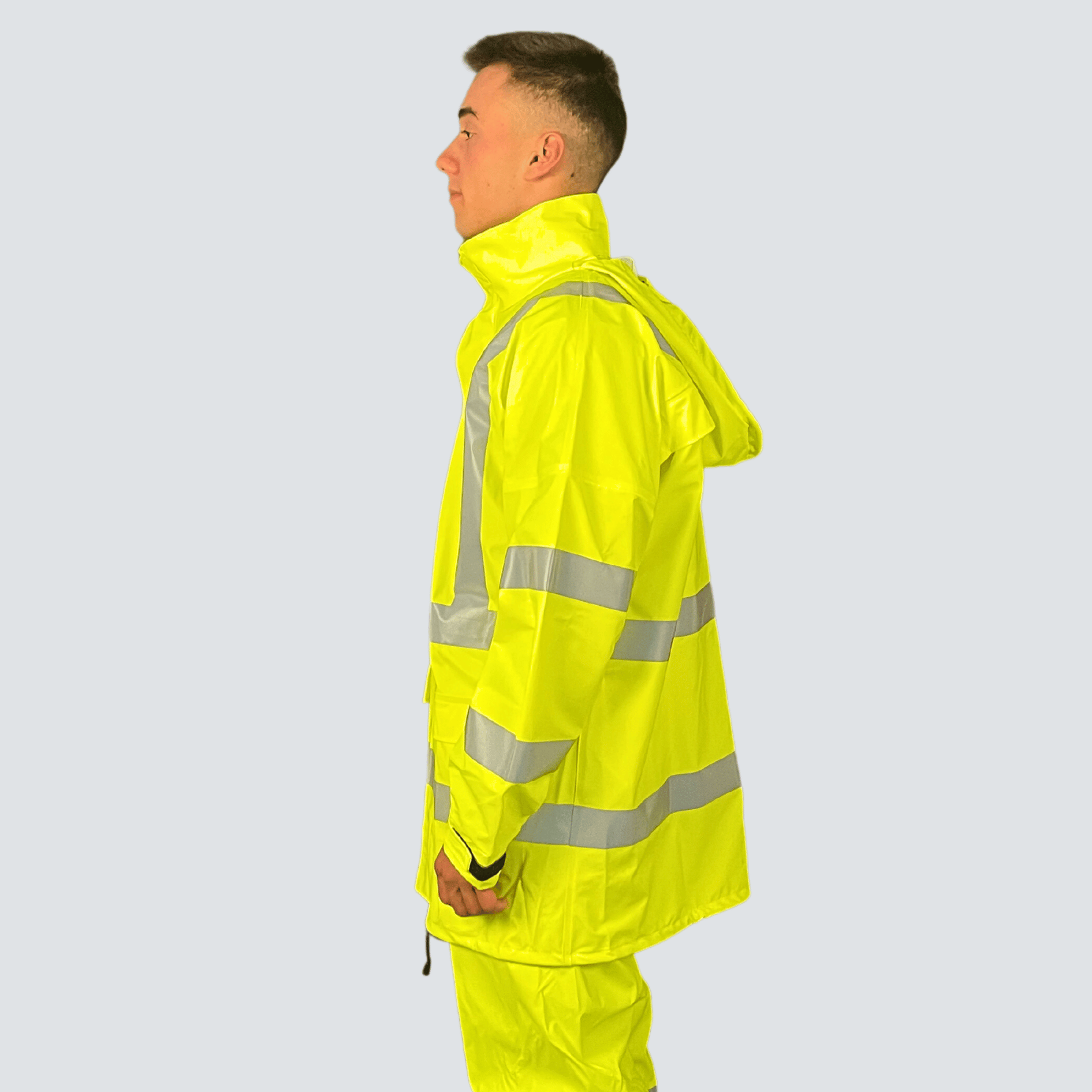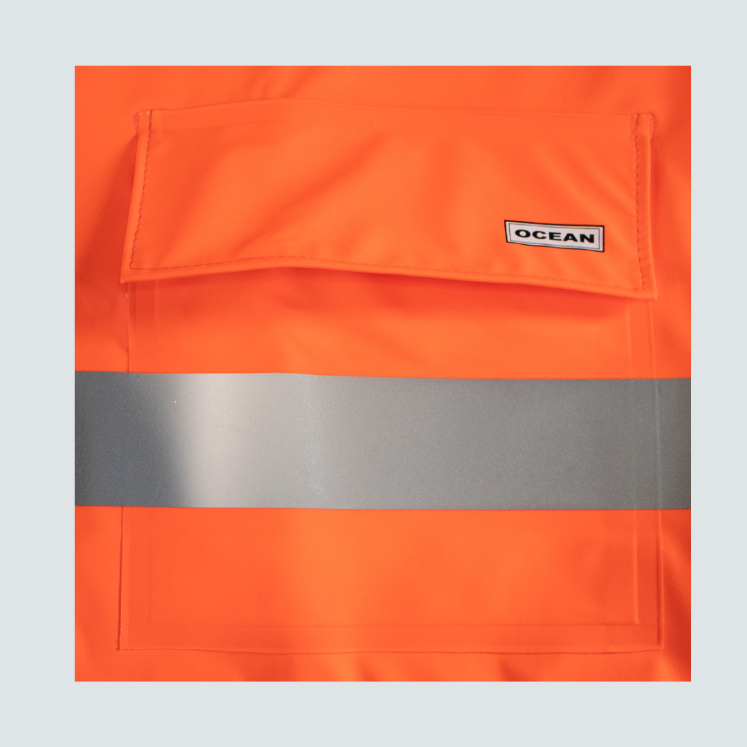 Diese Kleidung ist eine High-Vis-zertifiziert und in komfortabler Qualität hergestellt, geeignet für nasse Bedingungen und wo hohe Sichtbarkeit erforderlich ist. Hochwertige Regenbekleidung mit YKK®- Reißverschluss und Klettverschluss.