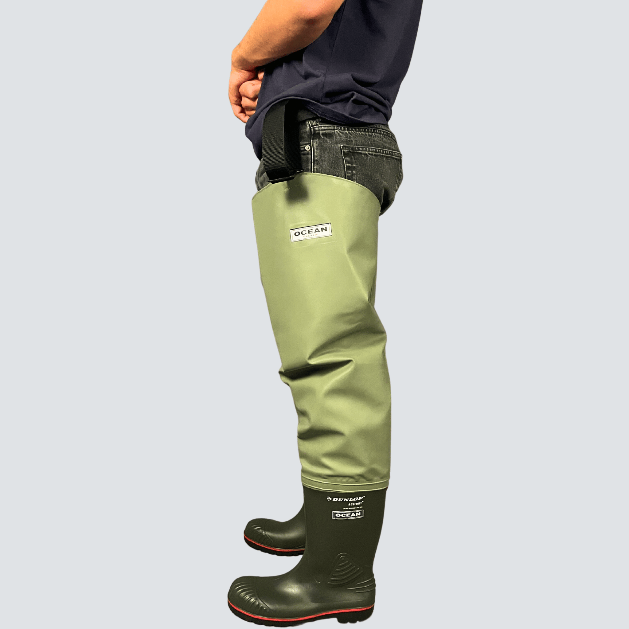 Diese Wathose ist eine strapazierfähige, schwere See-Stiefeln. Zu den Wathosen gehören Qualitäts Stiefel mit rutschfesten Sohlen. An den Gürtelschlaufen mit Fix Lock-Verschluss befestigen.