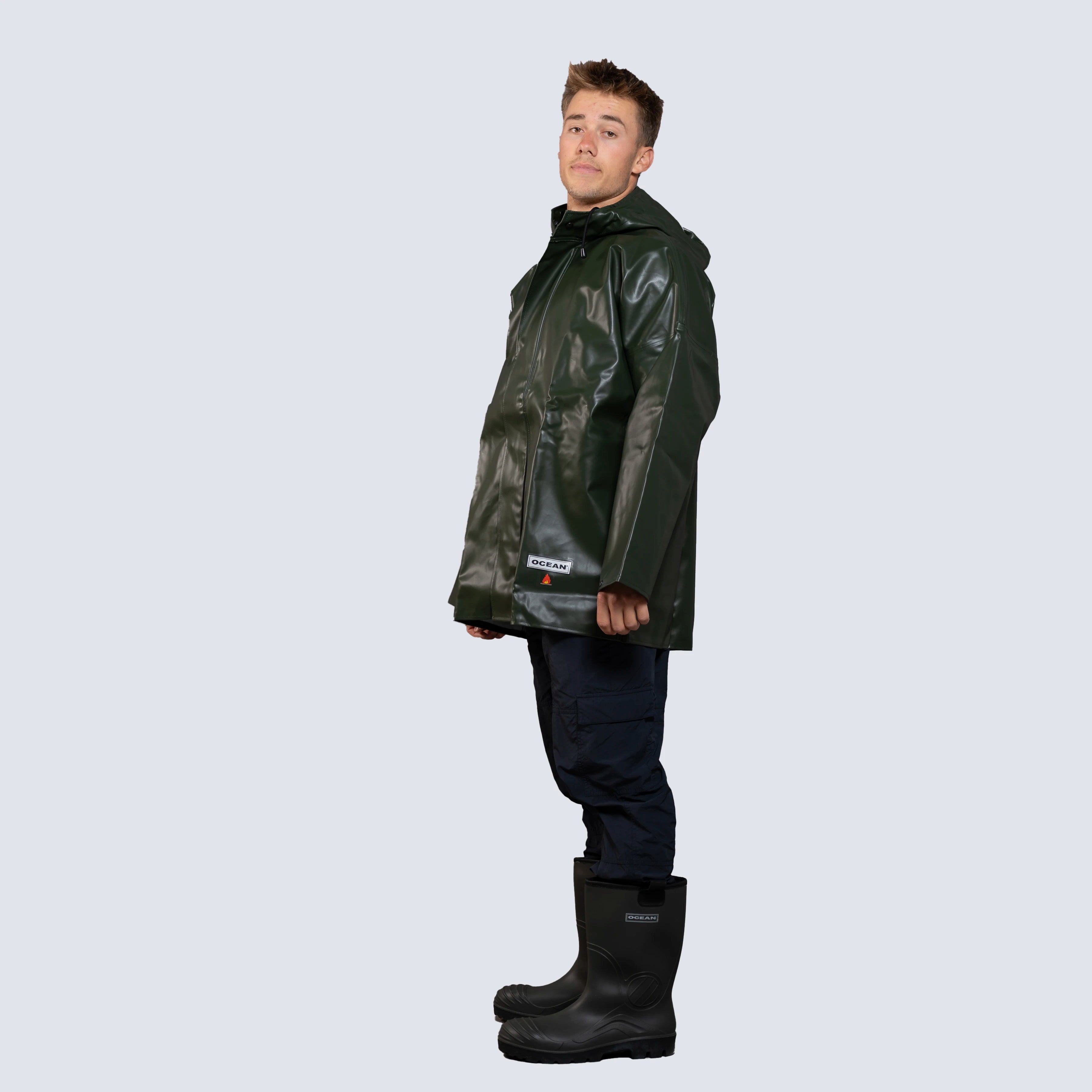 Geeignet für harte Umgebungen: Offshore Heavy Die Jacke ist für den Einsatz in geeignet offshore- und Meeresumgebungen, in denen der Schutz vor nassen Bedingungen, Chemikalien und potenziellen Brandgefahren von entscheidender Bedeutung ist.