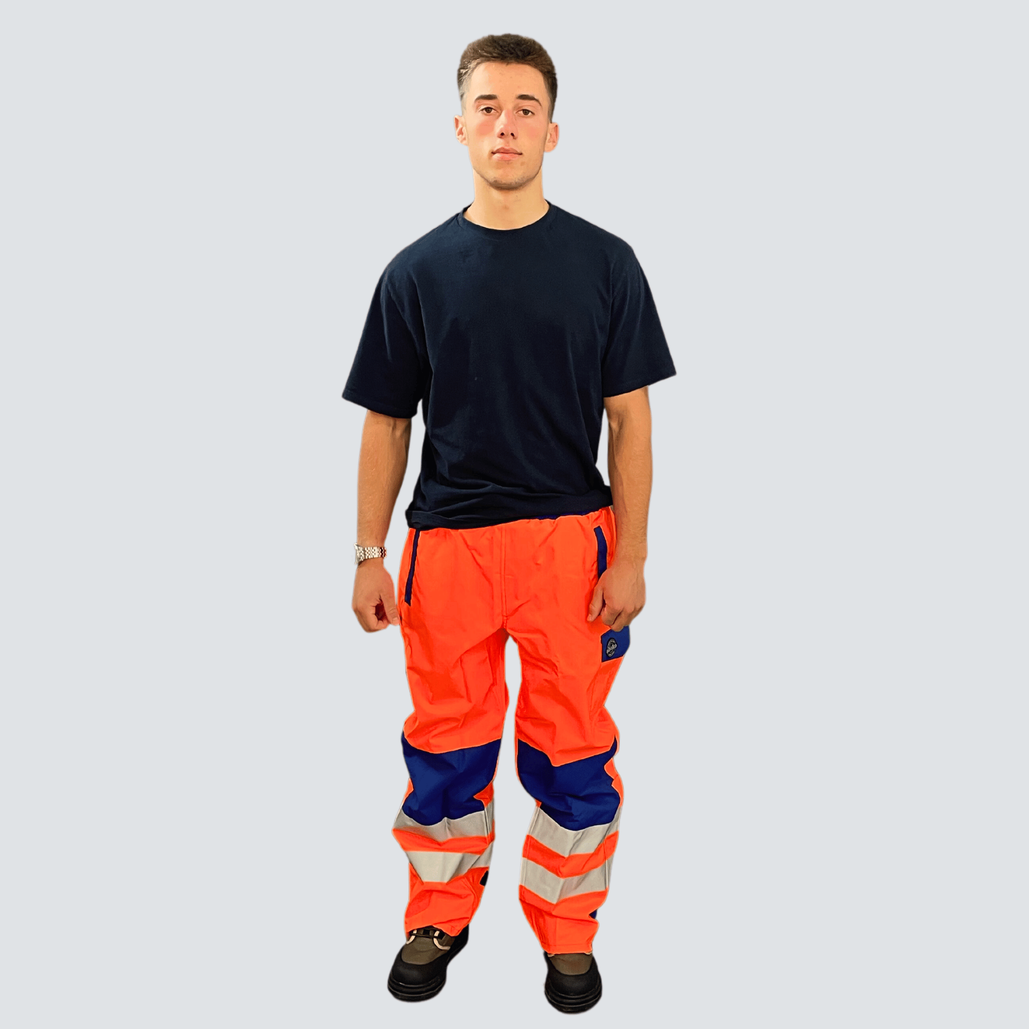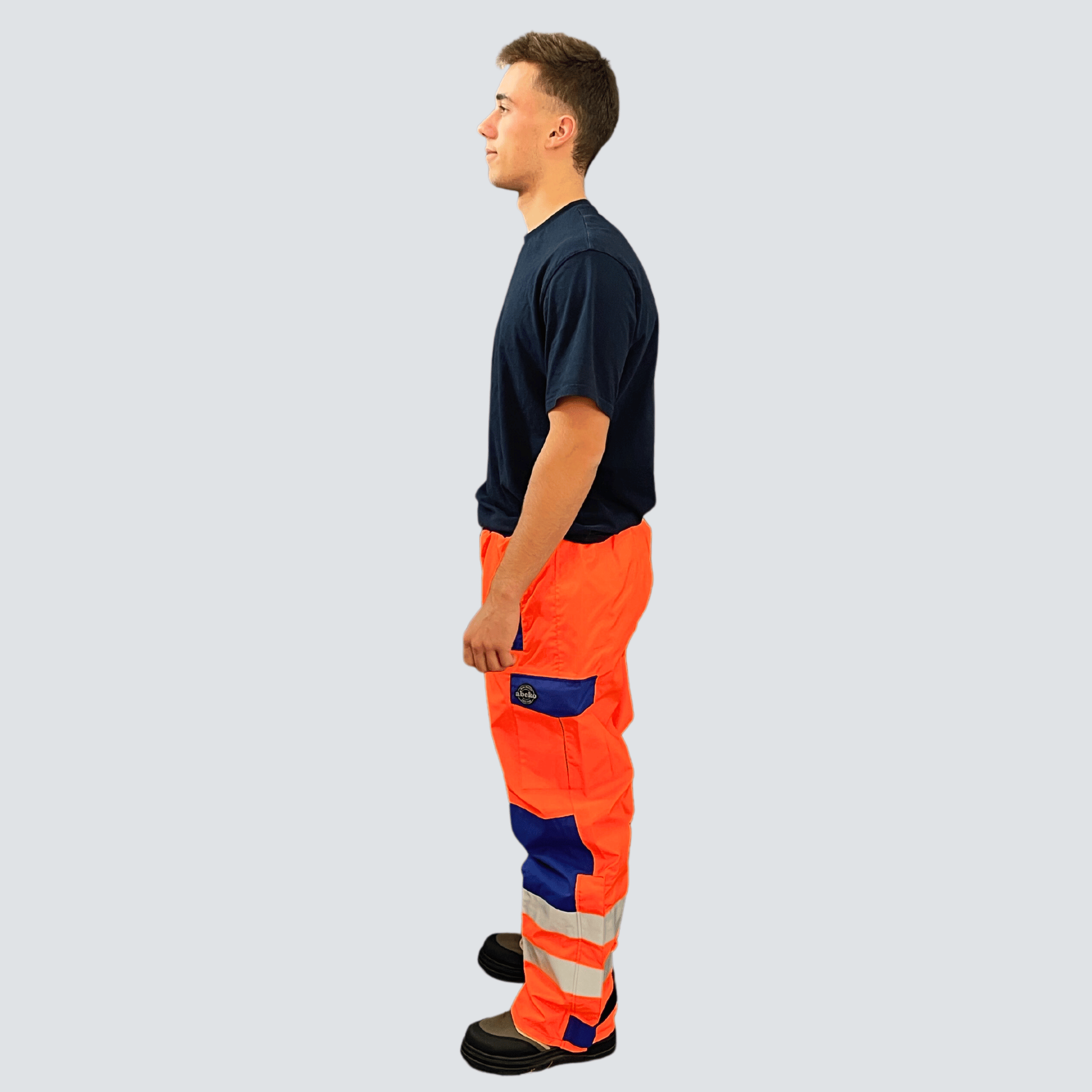 Reflektierende Streifen an den Hosenbeinen: Reflektierende Streifen erhöhen die Sichtbarkeit bei schlechten Lichtverhältnissen und sorgen so für mehr Sicherheit, besonders wenn Sie in belebten Bereichen arbeiten.