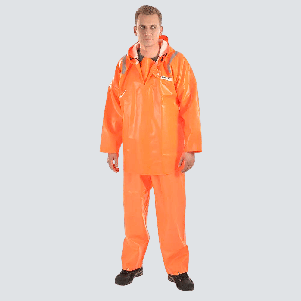 Denne busstrøyen er spesialdesignet for å beskytte mot regn, vind og flammer, samtidig som den sikrer synlighet, noe som kan være viktig i arbeidssituasjoner. Mansjettene i neopren og vindfangene i ermene bidrar til å holde brukeren tørr i våte omgivelser, og de flammehemmende egenskapene gir ekstra beskyttelse i farlige miljøer.