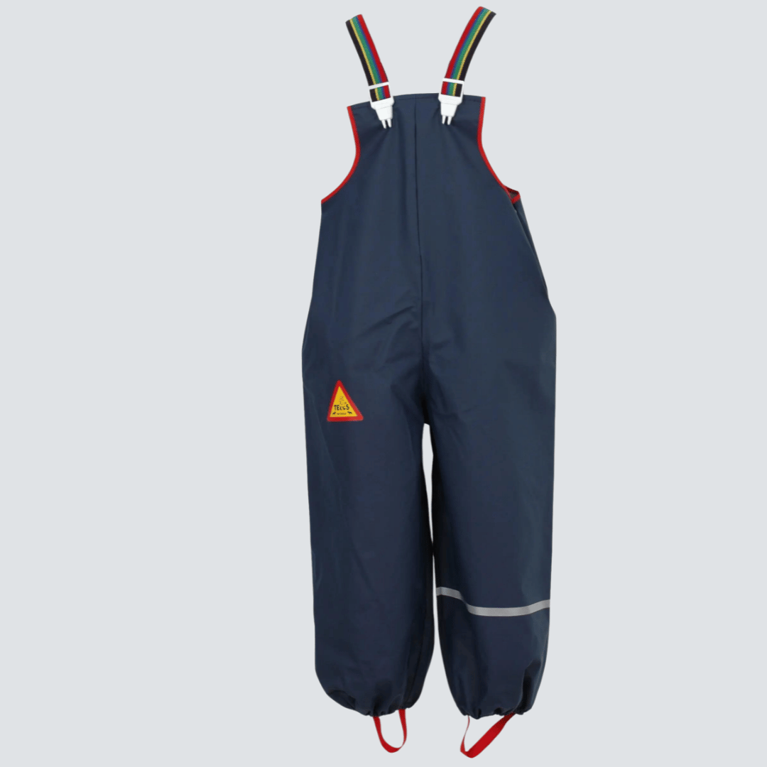 De reflekterande ränderna runt benen ökar säkerheten genom att göra barnen mer synliga i dåligt väder och dåliga ljusförhållanden. Resåren vid fötterna är en smart funktion som hjälper till att hålla overallen på plats och hindrar vatten från att tränga in.